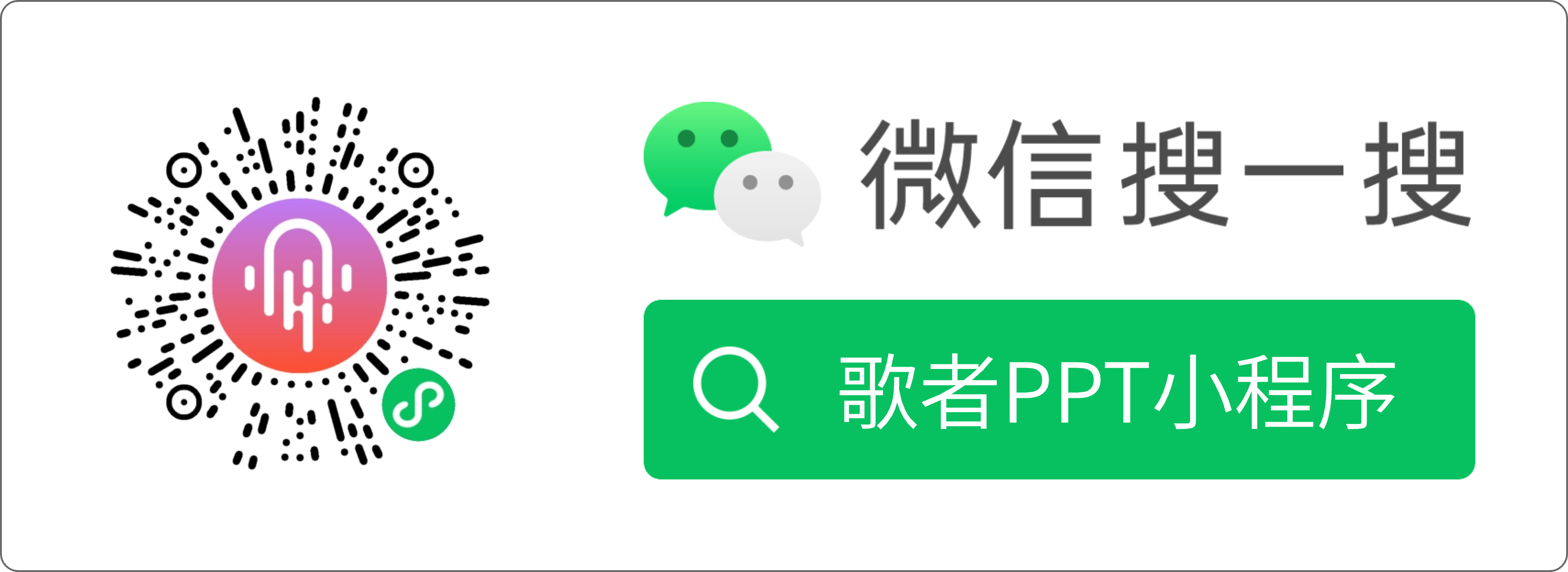 直接在微信顶部搜索栏中输入「歌者 PPT 小程序」或扫描下方小程序码,即可找到并体验小程序。