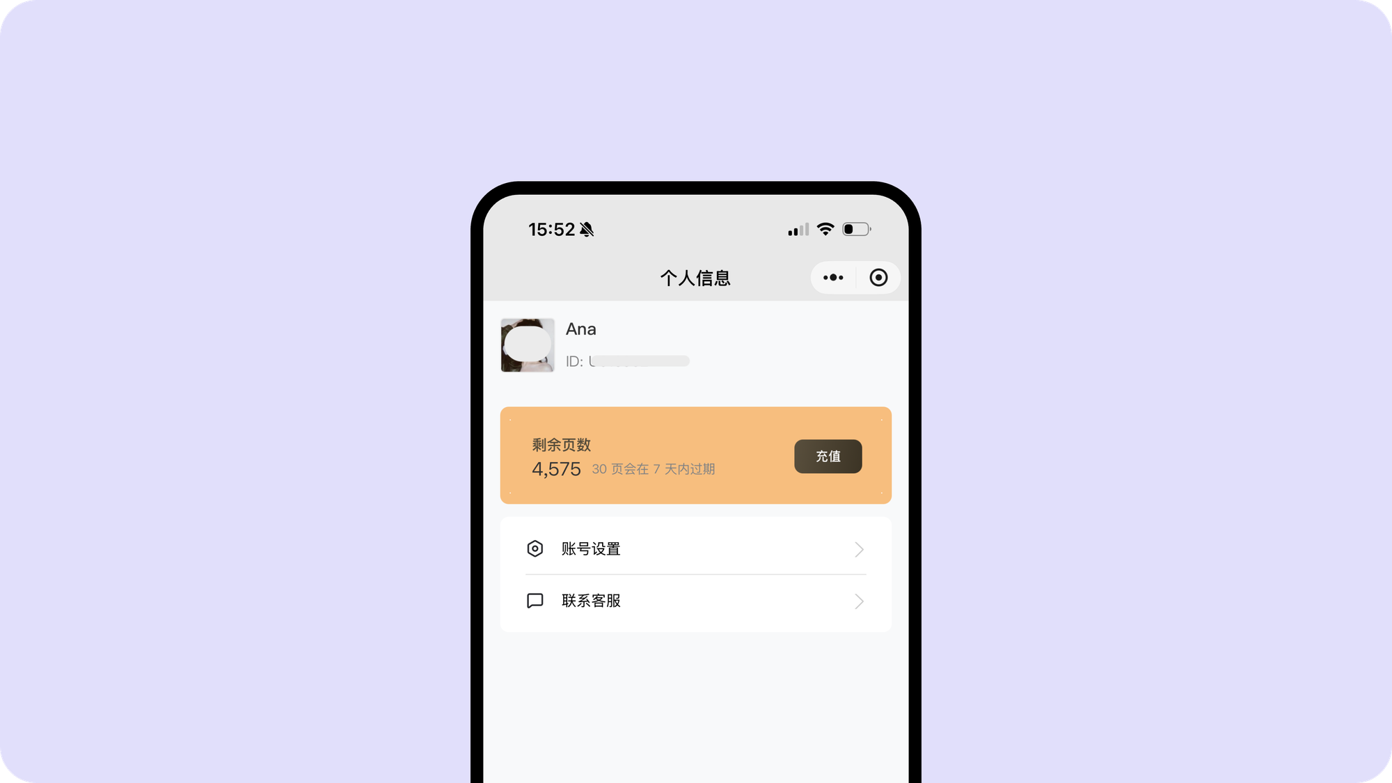 在这里你可以查看账户可用资源、修改个人信息,或一键联系客服。