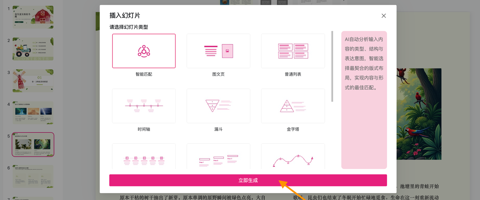 3.确认好内容后,点击「下一步」进行幻灯片类型选择,同样支持智能匹配或手动选择;