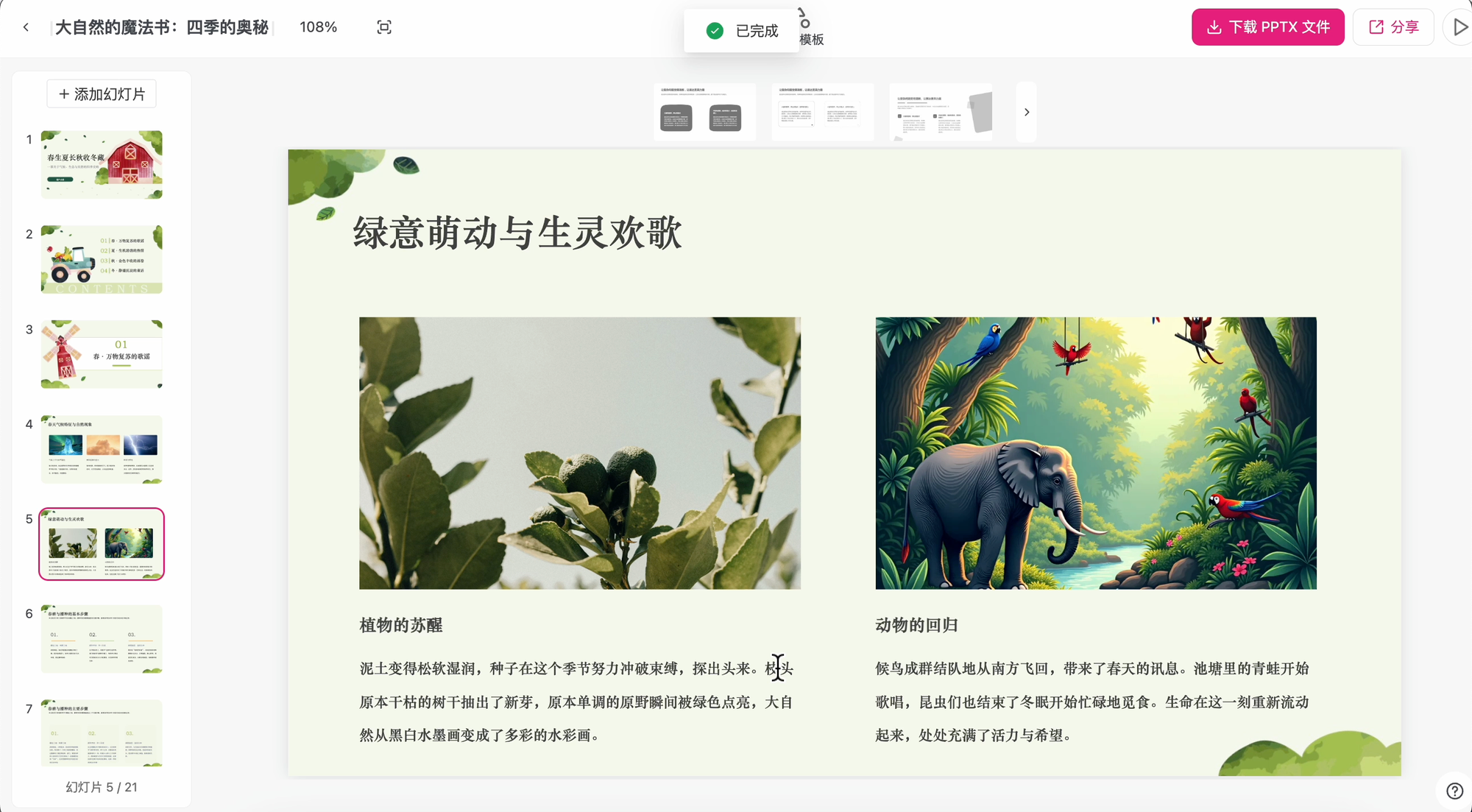 4.等待生成完成,新的一页会自动放置在选中幻灯片之后;