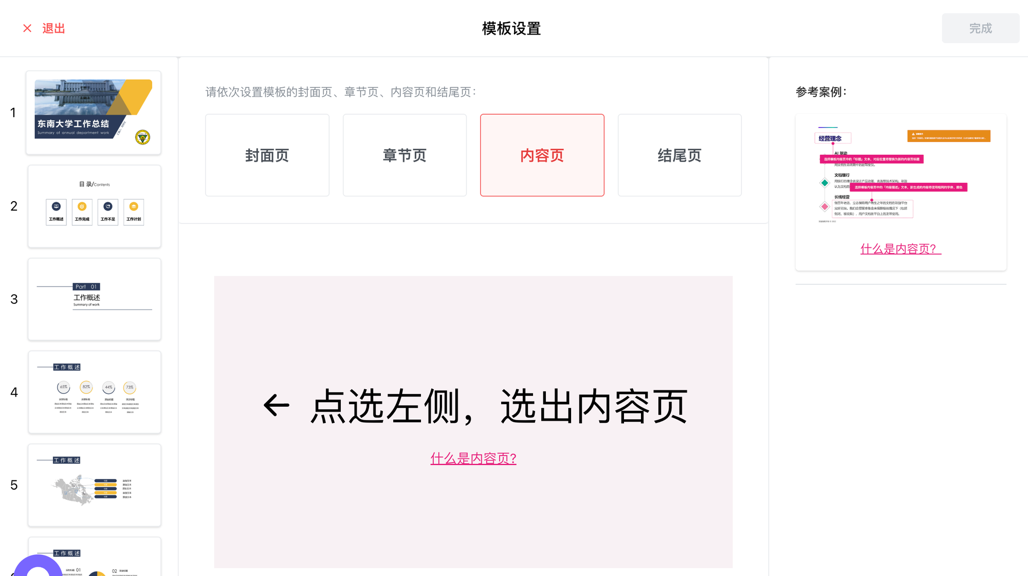 - 上传完成后,简单设置一下封面页、章节页、内容页等页面类型,让 AI 更好地理解你的模板结构;