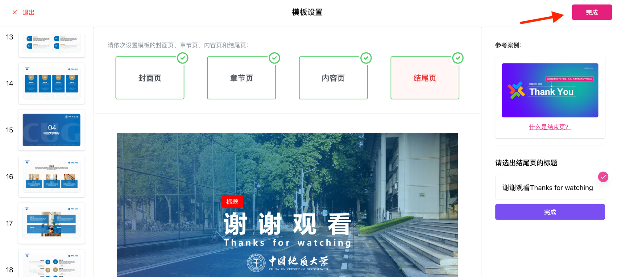 完成页面设置后,点击「完成」,模板就添加成功啦。